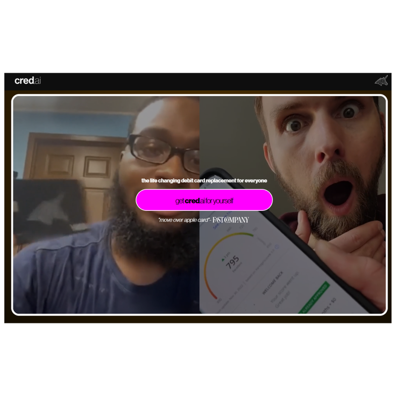 Cred.ai offers a high-tech, premium everyday card spending experience that is 100% mobile and comes with a free metal card. With the Cred.ai guarantee, you never pay fees or interest, never overspend, build credit automatically*, and can spend your paycheck early**, all thanks to cutting-edge technology you can't find anywhere else like Check Please™ and Flux Capacitor. Enjoy 100% mobility, 24/7 support, real-time control, and virtual Digital Cards that are active instantly upon approval. Applying does not impact your FICO score, and a FICO score is not required to apply.